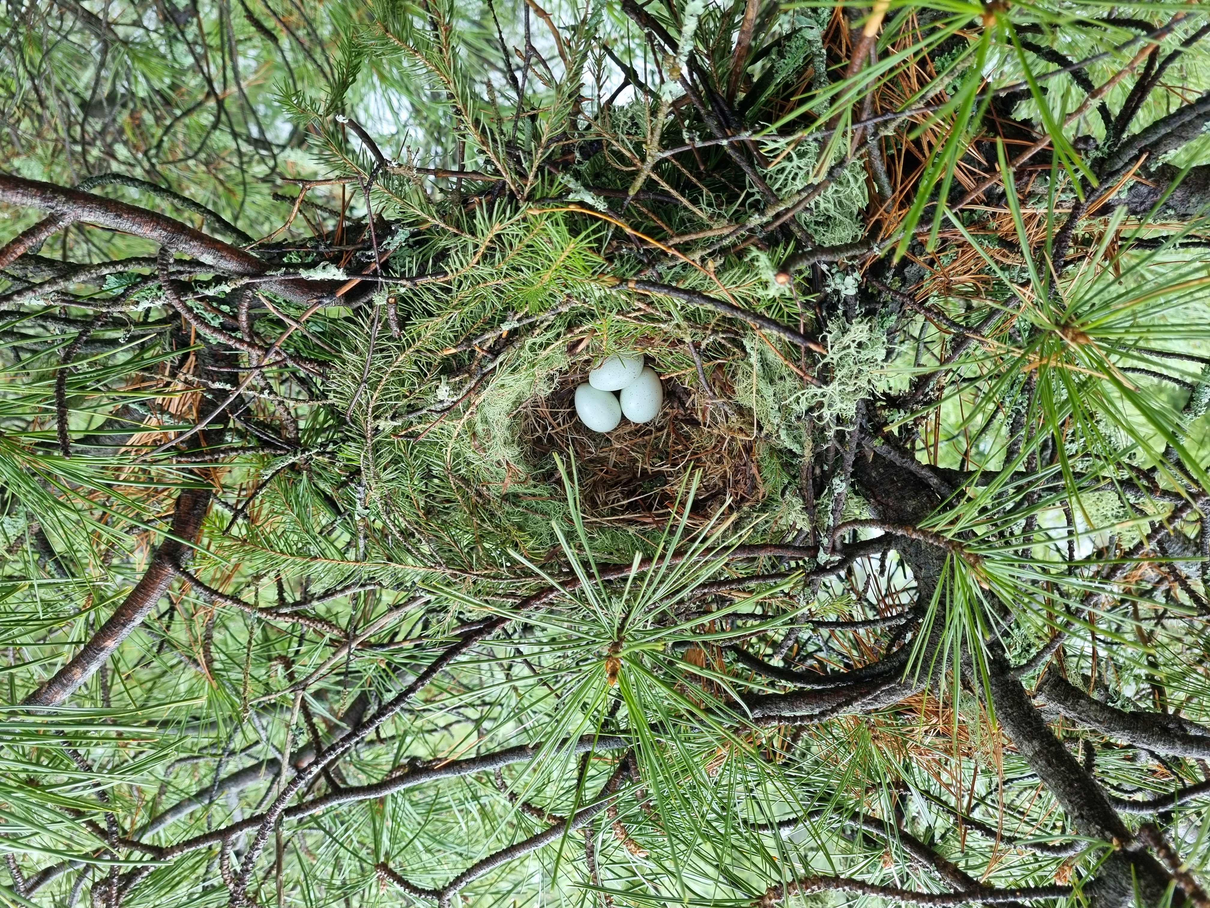 Фото 1. Гнездо кедровки на лапе сосны сибирской кедровой, окрестности г. Ханты-Мансийска