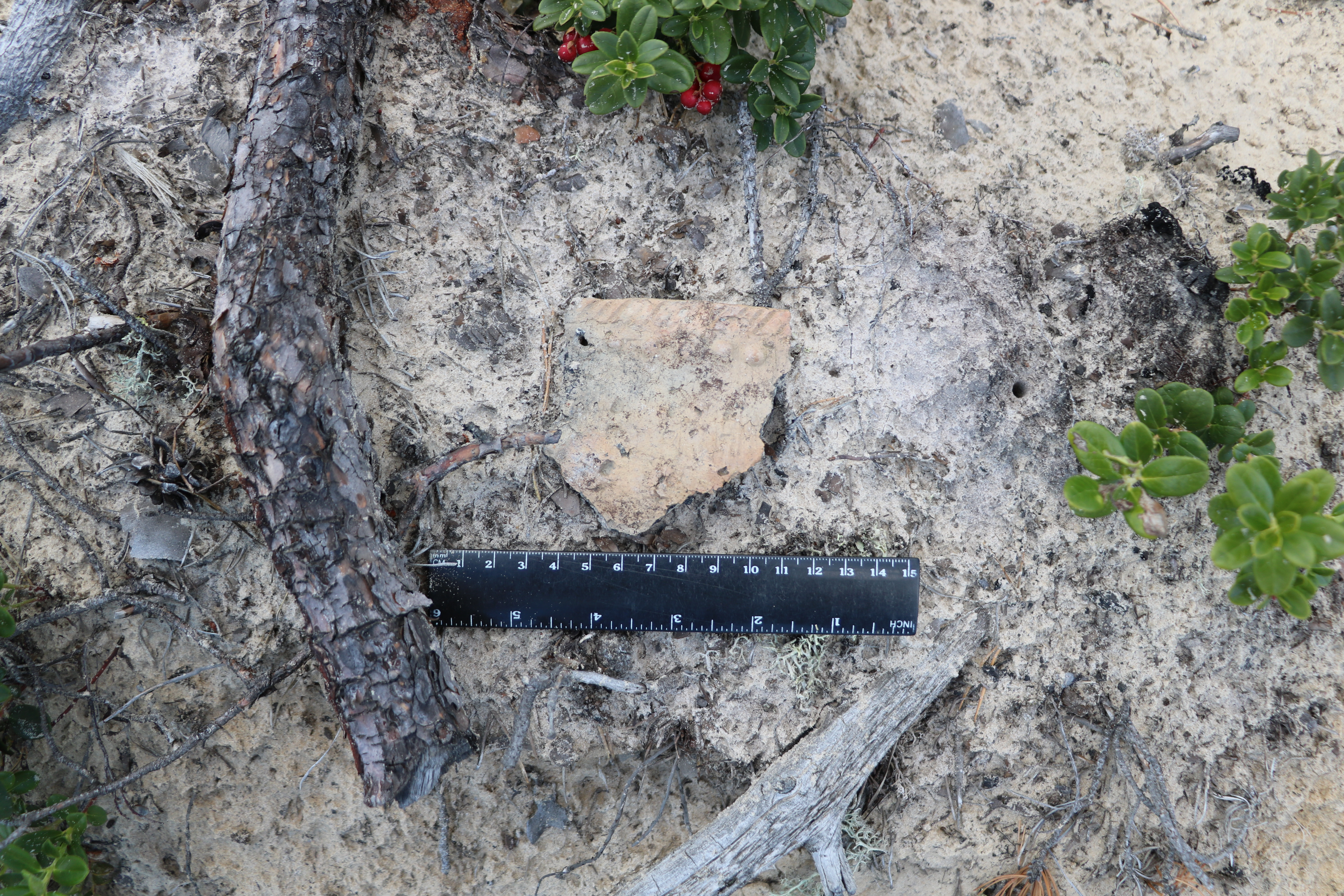 Фото 6. Фрагмент керамики in situ на городище Рекпанинское 7